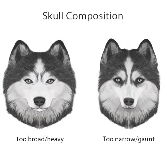 FAULTS: Too broad or too narrow, nor have an ‘apple head’ or prominent bulged forehead common in other breeds like the Chihuahua.