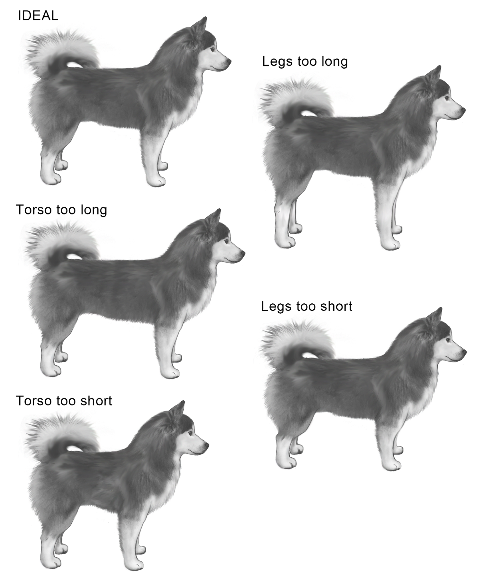 FAULTS: Torso too long or short for body. Legs too long or short for body.
