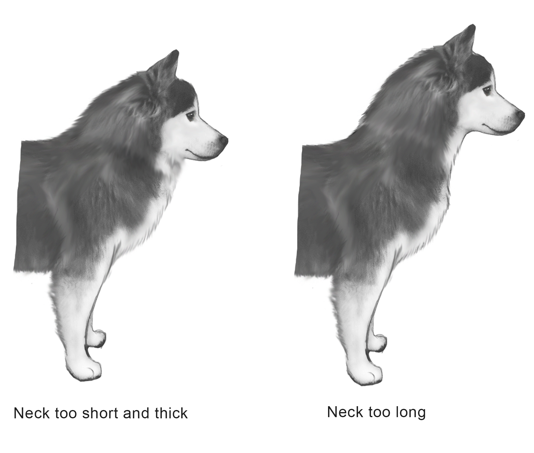 FAULTS: Disproportionate to the overall body structure. Neck that is too short and thick, or too thin and long.